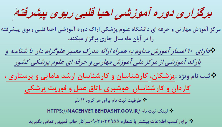 اطلاعیه برگزاری دوره آموزشی احیا قلبی ریوی پیشرفته ۰۸ مهر ۱۴۰۲ | ۱۰:۲۰ کد : ۳۷۹۸۷ اطلاعیه ارسال به دیگران نام شما ایمیل شما ایمیل دریافتکننده ارسال انصراف تعداد بازدید:۱۶۷۰۴