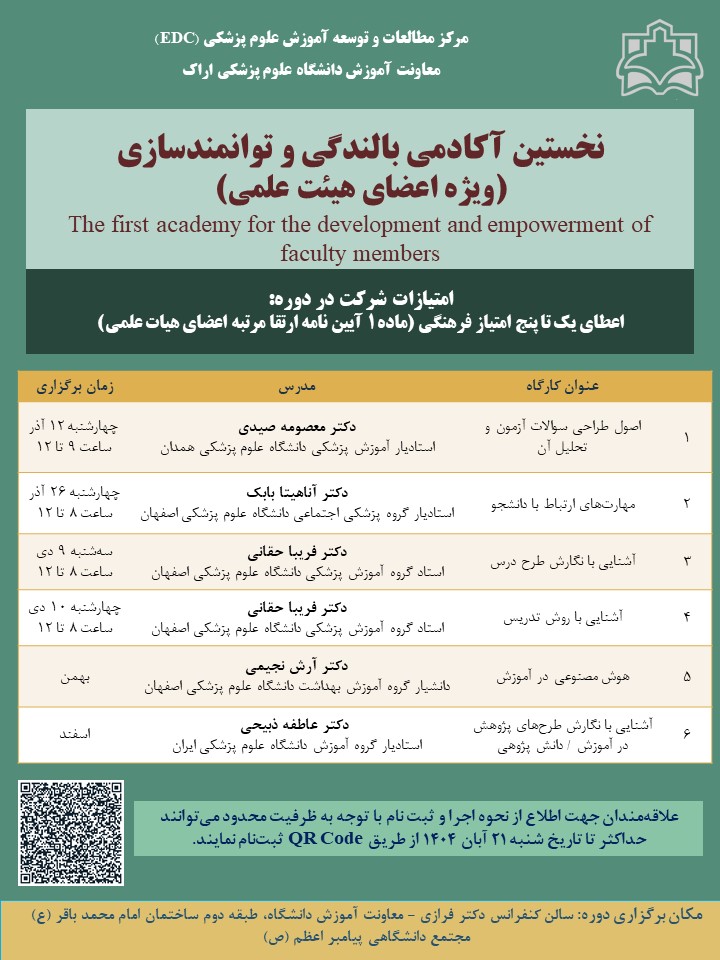 نخستین آکادمی بالندگی و توانمندسازی (ویژه اعضای هیئت علمی) ۱۱ آبان ۱۴۰۴ | ۱۱:۰۱ کد : ۵۵۹۵۴ اخبار اسلایدی اخبار اصلی ارسال به دیگران نام شما ایمیل شما ایمیل دریافتکننده ارسال انصراف تعداد بازدید:۵۱۶ فرم ثبت نام پوستر